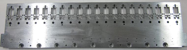 产品名:硬盘碟片挂杆 质料:PEEK 主要工艺:CNC 手艺难点: --塑料材质所有齿深度公差:[2.5±0.01] --所有齿型中心距公差:[±0.025] | 产品名:HGA凹模 质料:CD 650 主要工艺:电火花,抛光 手艺难点: --凹模曲面电火花加工外貌粗糙度Ra 0.1以内;;;;;;; --凹模曲面轮廓度0.0015mm以内;;;;;;; -- 100投影仪检测凹模曲面轮廓度;;;;;;; -- 200倍工具显微镜检测确保凹模光面Ra0.1匀称一致 | 产品名:针载板 质料:ESD POM 主要工艺:CNC 手艺难点: -- 132处Ф0.20mm精孔,,,,, --直线度0.005mm;;;;;;; --位置精度 0.005mm。。。。。。 |